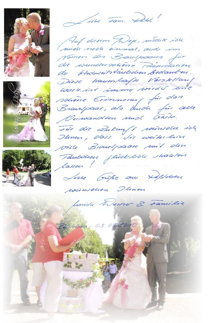 mit Ihren Tauben bedanken. Die Hochzeit fand in unserer alten Heimat statt.