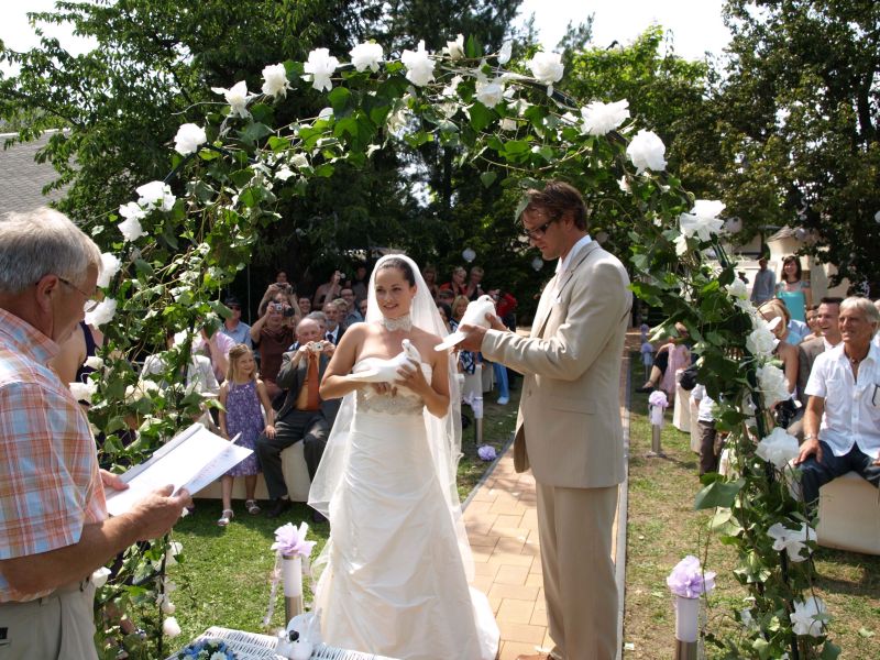 ...wir möchten uns für Ihre wunderschöne Zeremonie im Kurpark Bad Lauchstädt recht herzlich bedanken. Wir und auch unsere Gäste waren von der romantischen Stimmung ganz verzaubert. Es war einer der vielen wunderschönen Höhepunkte an unserem Traumhochzeitstag. Es wird uns allen in ewiger Erinnerung bleiben.